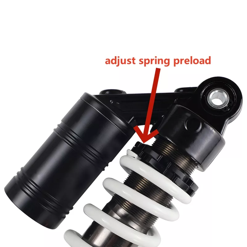 Внешняя подушка безопасности 280 мм мотоциклетного амортизатора Особенности регулируемой пружинную предварительную нагрузку, что позволяет гонщикам изменять , скорректировать, чтобы сделать пружину сильнее, отрегулируйте, чтобы сделать пружину мягче